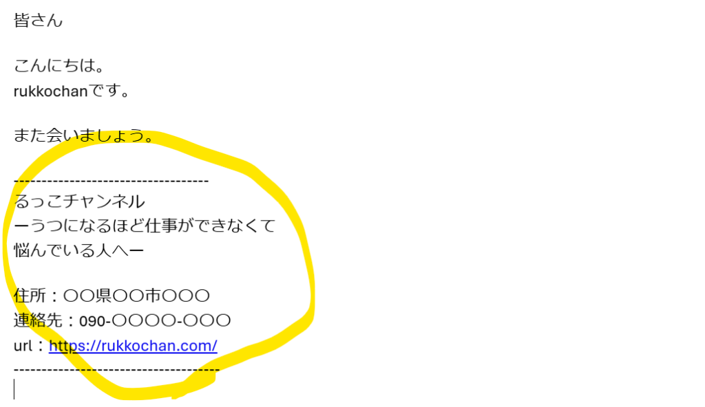 署名とは、メールの末尾に送信者の情報を記載する、